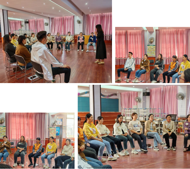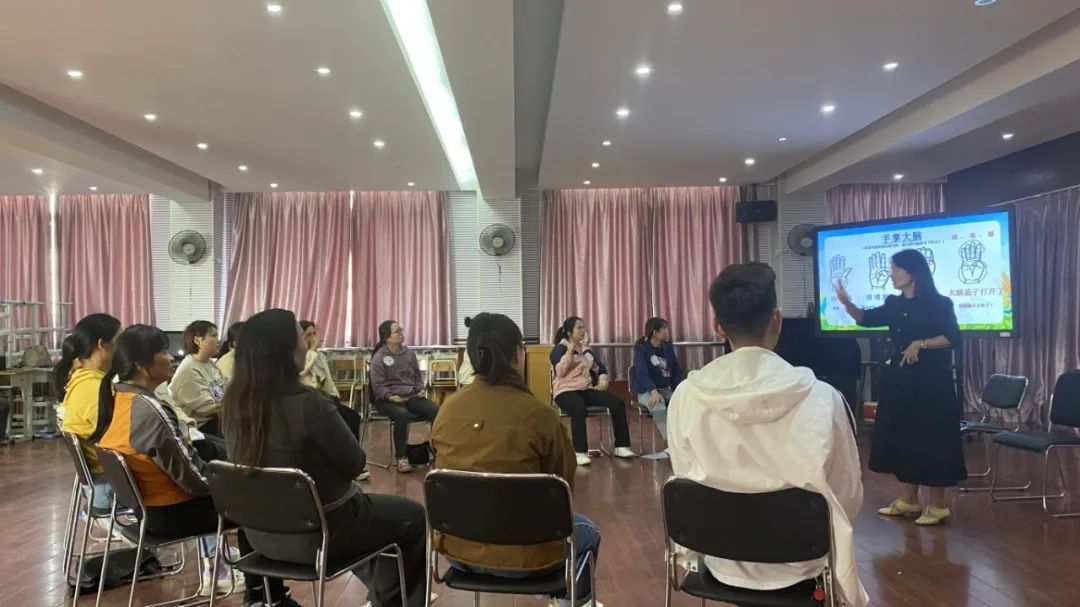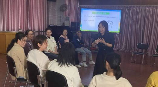 活动开始前陈老师组织开展了“大风吹” 热身游戏。家长们在讲师的引导下迅速进入状态,打破了家长们之间的陌生感,现场气氛热烈而欢快。紧接着的“握拳” 游戏,则将活动引入了更深层次的情感交流与自我反思环节。陈老师要求家长们紧紧握住拳头,模拟生活中面对压力与挑战时的紧张状态,随后引导大家逐步放松。通过这一简单却富有深意的动作,家长们深刻体会到在教育孩子过程中,如何去调整自己的情绪与态度,以更加从容和理智的方式应对。