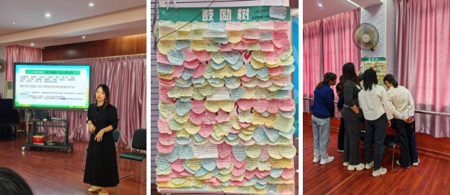 在沟通技巧提升板块,陈老师带来了“我句式”的体验活动以及鼓励树。陈老师通过案例分析与角色扮演互动,家长们学会了运用“我句式” 来应对孩子的挑战,家长体验到“我句式”的魔法力量,发现这个沟通句式很适合青春期的孩子。青春期的孩子在成长中面对自己的变化,自己也圧力和迷茫,也需要鼓励。陈老师将自己家里践行了7年的鼓励树现场给家长观看,同时现场请家长给自己、家人、孩子写鼓励贴,拿回家后就可以使用,将这个鼓励工具用起来。